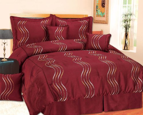 Cheap 7 Piece Queen Sandra Burgundy - Luxurious (Bed in a Bag) Comforter Set Review