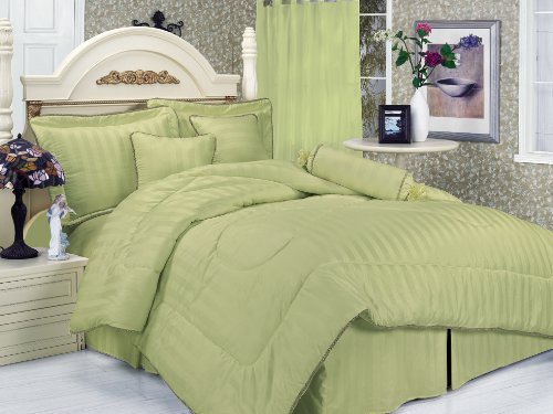 Cheap 7Pcs Queen Sage Stripe Bed in a Bag Comforter Set Review