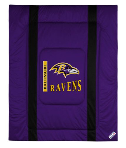 Anyone can walk around in a Ravens t-shirt. But a fan's true colors come out in the privacy of their own bedroom. Jump into bed after a long day and wrap yourself in this Baltimore Ravens Sideline Queen Comforter. Features screenprinted team logo with team colors on front.