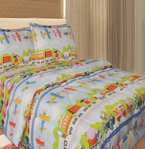 Full Microfiber Kids Trucks and Airplanes Comforter Set Overview