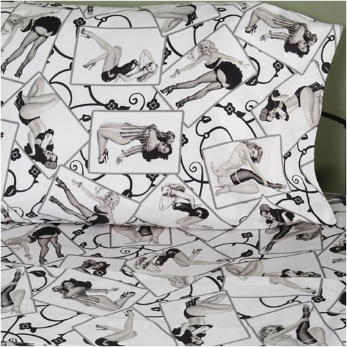 Cheap Sin in Linen Wish You Were Here Black and White Pinup Print Comforter 100% Cotton Sateen 300 Thread Count, Full/Queen Review