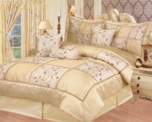 Cheap 7 Piece King Medina Beige - Luxurious (Bed in a Bag) Comforter Set Review