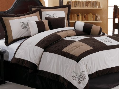 Cheap 7 Pieces Luxury Brown, Beige, and Coffee Embroidery Patchwork Comforter Set / Bed-in-a-bag King Size Bedding Review