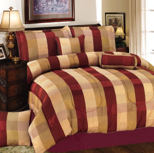 Cheap 7pcs Queen Grid Comforter Bed in a Bag Set Burgundy Review