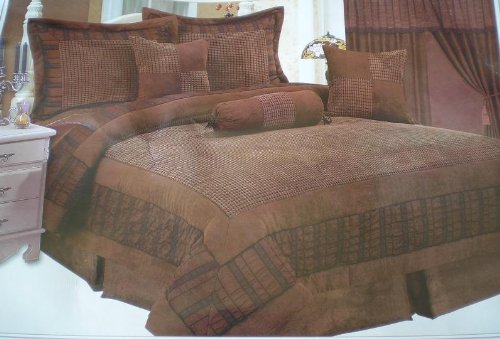Reinvent your bedroom with this refreshingly elegant patchwork comforter set. Constructed of long-lasting soft micro suede corduroy in chocolate brown center. Brown stipte on the border and brown micro suede as comforter edge. The designer style modern comforter set will infuse fashionable ambiance to your room and its super soft feel would provide blissful comfort and sweet dreams.