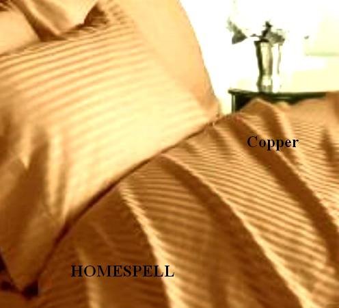 Homespell Egyptian cotton 600 Thread Count Sateen Stripe 4 Pc Comforter Set - Copper Full. Overview