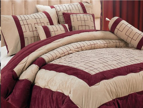 Cheap 7Pcs Queen Burgundy Geo Grid Comforter Bed in a Bag Set Review