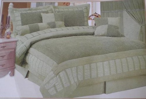 Brand New 7pcs QUEEN Luxioury Micro Suede corduroy in Sage green desing Comforter Set bedding-in-bag.