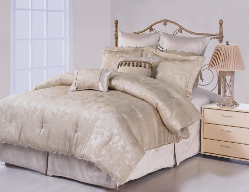 - 8pc Comforter Set includes: Comforter, Bed Skirt, 2 Shams, 2 Euro Shams, Square Pillow, Breakfast Pillow