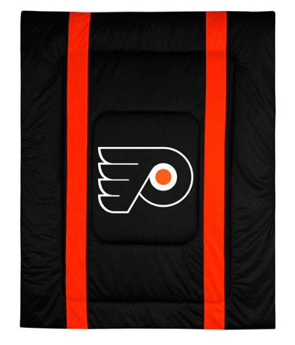 Anyone can walk around in a Flyers t-shirt. But a fan's true colors come out in the privacy of their own bedroom. Jump into bed after a long day and wrap yourself in this Philadelphia Flyers Sideline Queen Comforter. Features screenprinted team logo with team colors on front.
